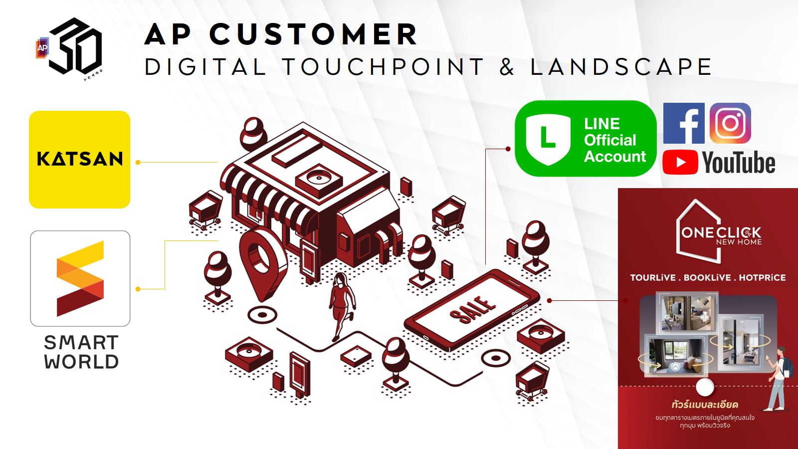 ซึ่ง EVERYTHING DIGITAL คือหนึ่งยุทธศาสตร์สำคัญในการพลิกเกมส์ธุรกิจด้วยการนำดิจิทัลเข้ามาเป็นส่วนหนึ่งในการส่งมอบ Digital Living Experience ให้กับลูกค้าในทุกๆ Journey (เส้นทางการเดินทางของผู้บริโภค) ที่เริ่มตั้งแต่ก่อนเข้ามาเป็นลูกค้า ด้วยการพัฒนาแพลตฟอร์มต่างๆ เพื่อสนับสนุนการขายที่เอื้อต่อสถานการณ์การแพร่ระบาดของ Covid-19 ในปัจจุบัน จนถึงจุดที่กลายเป็นลูกค้าและย้ายเข้าอยู่ในคอมมูนิตี้ของเอพี ด้วยการทรานฟอร์มมิติงานด้านพร็อพเพอร์ตี้ แมเนจเม้นท์