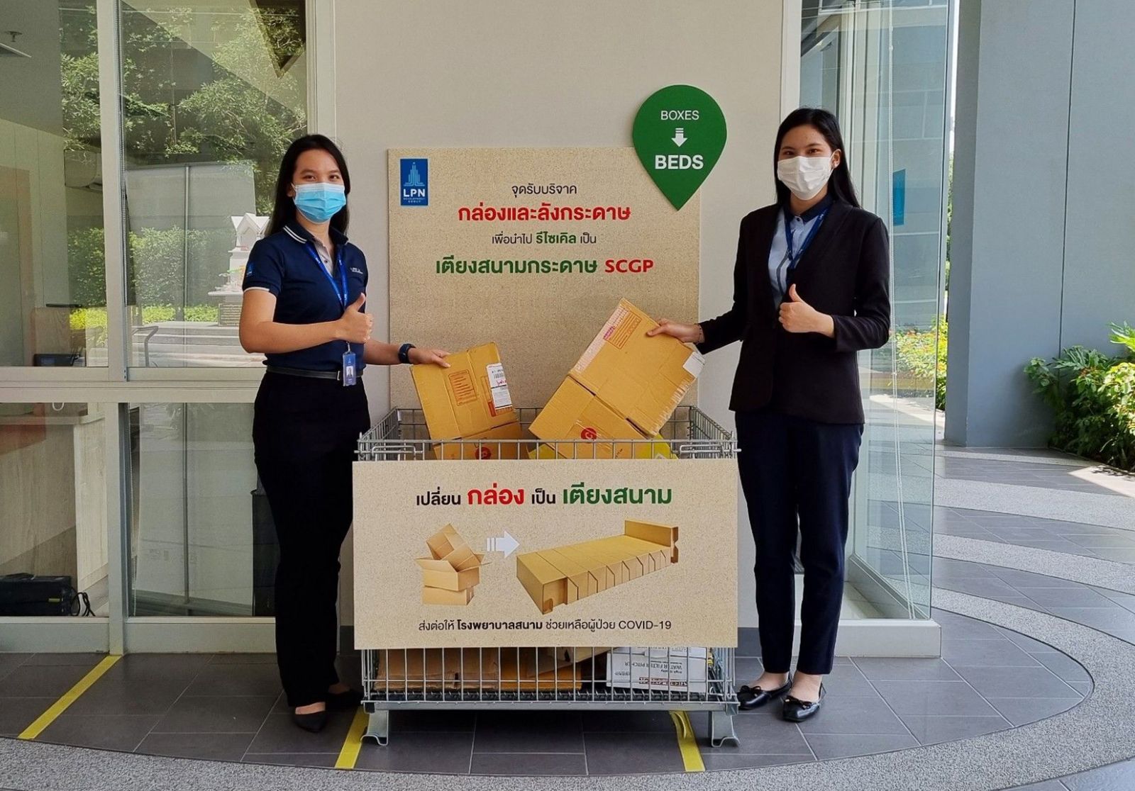 เพื่อนำกลับมารีไซเคิลและพัฒนาเป็น “เตียงสนามกระดาษเอสซีจีพี” เป็นส่วนหนึ่งในการสนับสนุนเตียงสำหรับโรงพยาบาล สนามทั่วประเทศ และช่วยการทำงานของบุคคลากรทางการแพทย์ในการดูแลผู้ป่วยติดเชื้อโคโรนาไวรัส 2019 (โควิด-19) ที่เพิ่มขึ้นเป็นจำนวนมากในปัจจุบัน ซึ่งสอดคล้องกับนโยบายของ LPN ที่ให้ความสำคัญกับเรื่องสิ่งแวดล้อมและการช่วยเหลือสังคมมาอย่างต่อเนื่อง