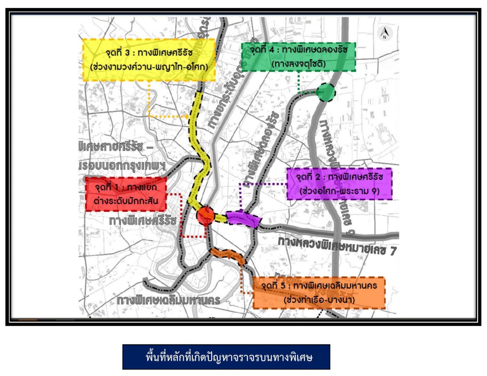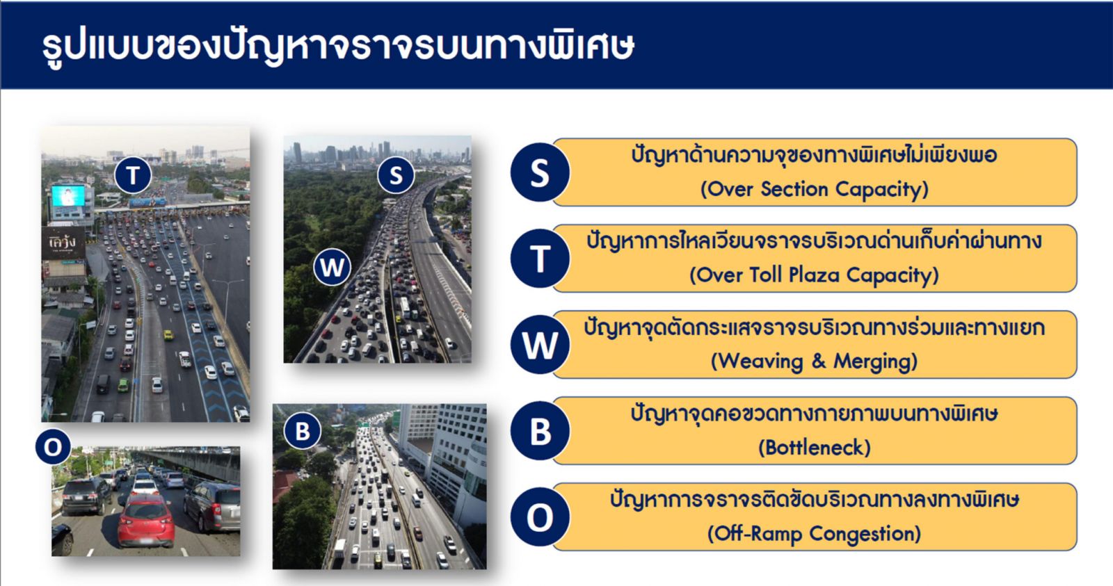 และ 5) ปัญหาการจราจรติดขัดบริเวณทางลงทางพิเศษที่เชื่อมต่อกับถนนพื้นราบ