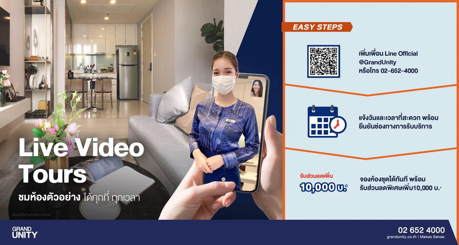 พร้อมกันนี้ แกรนด์ ยูนิตี้ ยังได้สนับสนุนในการให้บริการแก่กลุ่มลูกค้าที่สนใจเยี่ยมชมโครงการ ผ่าน Live Video Tours เพื่อให้สอดคล้องกับนโยบายภาครัฐในการป้องกันการแพร่ระบาดโดยคำนึงถึงสุขภาพและความปลอดภัยของลูกค้าเป็นสำคัญ อีกทั้งยังช่วยอำนวยความสะดวกให้แก่ลูกค้าได้อย่างรวดเร็ว ด้วยขั้นตอนง่ายๆ