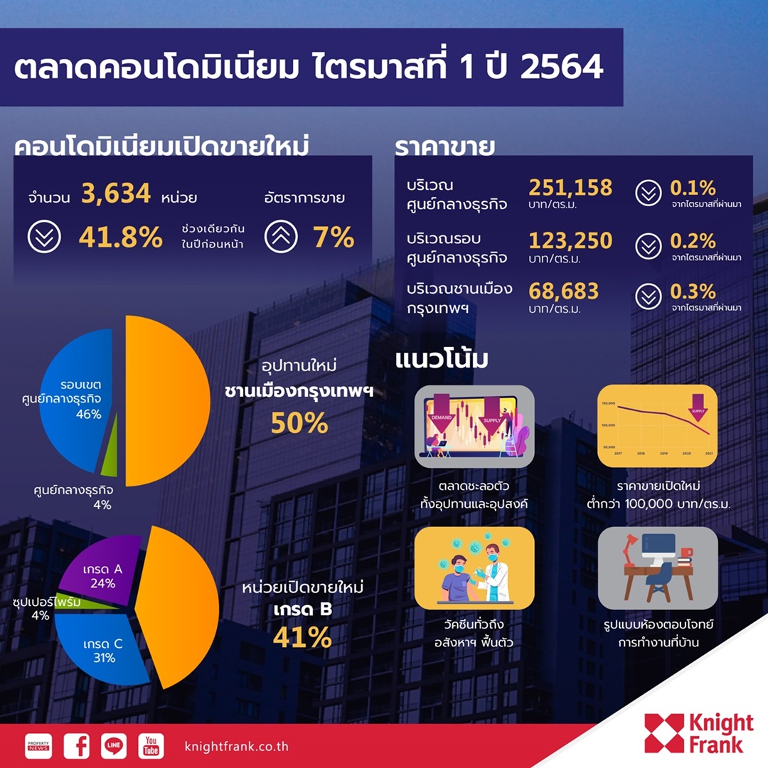 ไนท์แฟรงค์เผย Q1ปี64 โควิดกระทบคอนโดเปิดใหม่ทำเลชานเมืองราคาร่วง -15 เปอร์เซนต์