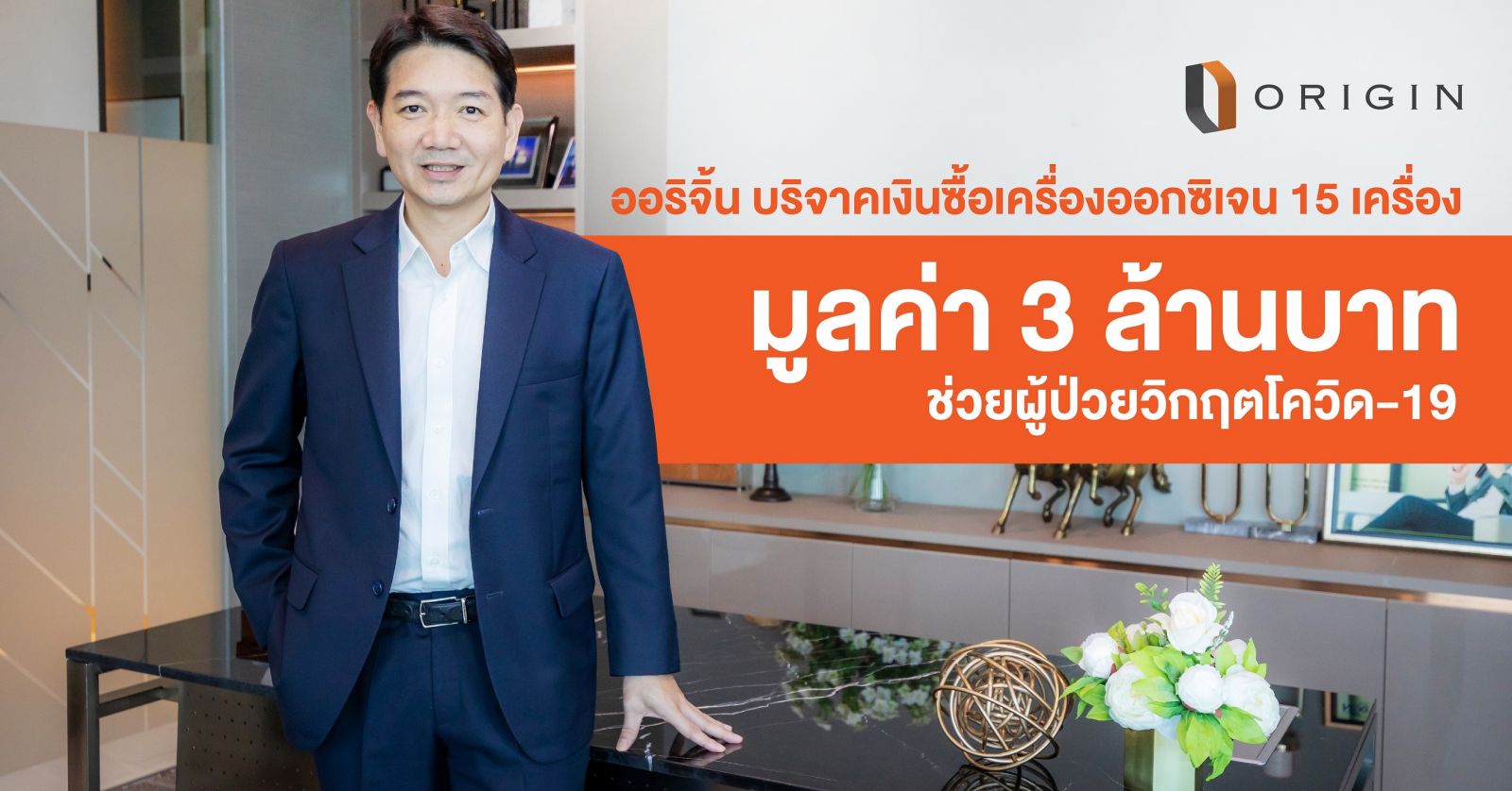 สถานการณ์ COVID-19 ระลอกใหม่ที่แพร่ระบาดหนักขึ้น ส่งผลให้ความต้องการเครื่องออกซิเจนช่วยหายใจสำหรับดูแลผู้ป่วยขั้นวิกฤติมากขึ้นตามไปด้วย งานนี้ บอสโด่ง-พีระพงศ์ จรูญเอก CEO แห่ง ออริจิ้น พร็อพเพอร์ตี้ จึงขอร่วมส่งพลังความห่วงใย ด้วยการสนับสนุนอุปกรณ์ทางการแพทย์ บริจาคเงินสมทบทุนจัดซื้อเครื่องออกซิเจนให้ 3 โรงพยาบาลของรัฐ