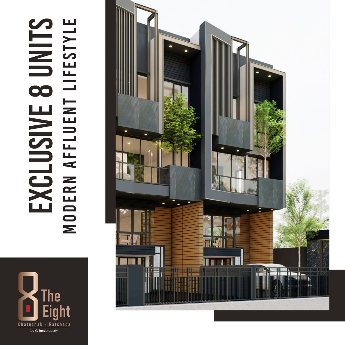 บริษัท จี แลนด์ พร็อพเพอร์ตี้ จำกัด แนะนำโครงการใหม่ THE EIGHT (Chatuchak - Ratchada) (ดิ เอท จตุจักร – รัชดา) บ้าน 3.5 ชั้น สไตล์โมเดิร์น Privacy Residence เอกสิทธิ์เพียง 8 ครอบครัว บนทำเล Extremely Rare ตอบโจทย์การอยู่อาศัยที่สมบูรณ์แบบ (Perfectionist Living) กับงานออกแบบที่ชาญฉลาด และประณีต ในทุกรายละเอียด