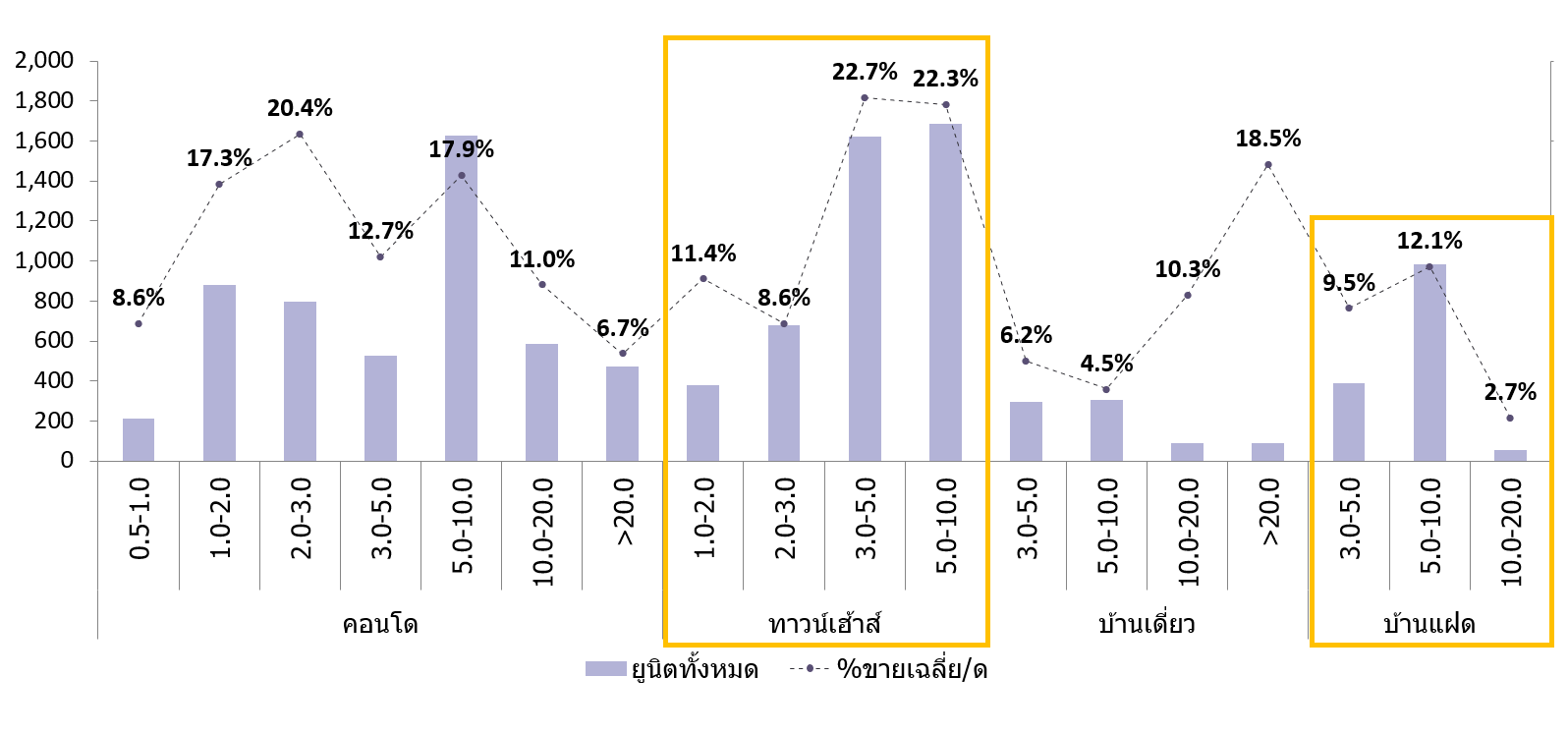 ซึ่งเป็นสินค้าทดแทนบ้านเดี่ยวที่ขยับราคาสูงขึ้นเป็น 8-10 ล้านบาท โดยพื้นที่ที่ทาวน์เฮ้าส์และบ้านแฝดมีการเปิดขายใหม่มากที่สุด คือโซนฝั่งบางนา-ศรีนครินทร์ รามอินทรา รังสิต-ลำลูกกา (ไม่เกินแนววงแหวนตะวันออก) ส่วนกลุ่มคอนโดมิเนียมที่เปิดใหม่และขายดีมีแนวโน้มที่จะปรับราคาลดลงเป็นกลุ่มระดับราคาไม่เกิน 2 ล้านบาท