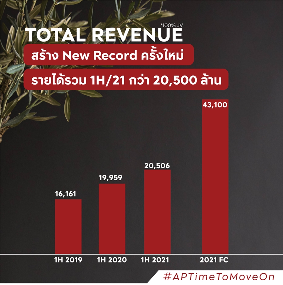 นายวิทการ จันทวิมล รองกรรมการผู้อำนวยการ สายงานกลยุทธ์องค์กรและการสร้างสรรค์ บมจ. เอพี ไทยแลนด์ กล่าวว่า “ถึงแม้ภาพรวมเศรษฐกิจจะผันผวนจากสถานการณ์การแพร่ระบาดที่เกิดขึ้น แต่บริษัทฯ ก็ยังคงดำเนินธุรกิจและสร้างผลงานได้เกินเป้าหมายที่คาดไว้ โดยผลการดำเนินงานครึ่งปีแรกของปี 2564 ด้านรายได้รวมจากสินค้าแนวราบ กลุ่มคอนโดมิเนียม (100% JV) และธุรกิจอื่นๆ นับเป็นนิวเรคคอร์ดครั้งใหม่