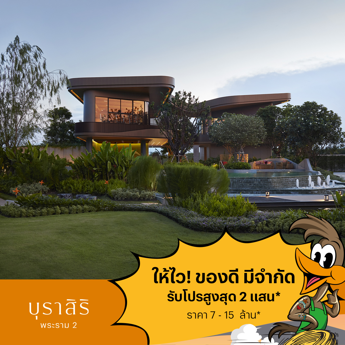 แสนสิริตอกย้ำความเป็นแบรนด์อันดับหนึ่งของคนอยากมีบ้าน ให้คุณเป็นเจ้าของบ้านหลังที่ใช่ ในโครงการที่ชอบ ได้ก่อนใคร #ของดีมีจำกัด กับบ้านและทาวน์โฮมกว่า 50 โครงการทั่วประเทศ พร้อมโปรโมชั่นโดนใจ #โปรดีมีจำกัด ไม่ต้องผ่อนดาวน์นานสูงสุด 3 เดือน* และรับข้อเสนอพิเศษสูงสุด 500,000 บาท* เริ่ม 1.79-36 ล้านบาท* จองเลยวันนี้-31 ต.ค. นี้! ลงทะเบียนรับข้อเสนอพิเศษก่อนใครได้ที่: http://siri.ly/VMHVTX8