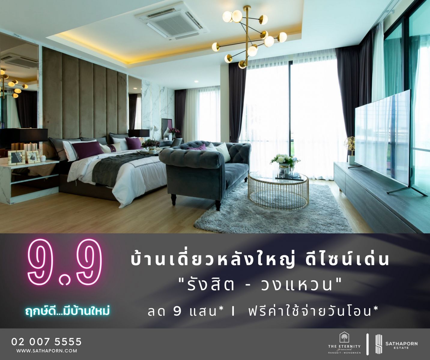 และโครงการ ”ดิ อิเธอร์นิตี้ กรีนวู้ด รังสิต-วงแหวน (THE ETERNITY Greenwood Rangsit-Wongwaen) โครงการบ้านเดี่ยวพร้อมอยู่ ใจกลางย่านรังสิต ตั้งแต่วันนี้ ถึง 9 ก.ย. ศกนี้เท่านั้น