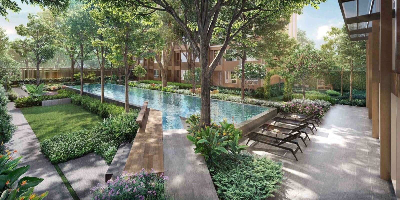 ตั้งแต่ Cheerful Garden พื้นที่พักผ่อนพร้อมที่นั่งทำงานในสวน, ที่นั่งตาข่าย (Net Seat) สำหรับชมน้ำตกให้ผ่อนคลายไปกับเสียงน้ำไหลเบา ๆ, Recreation Area พื้นที่สีเขียวสำหรับออกกำลังกายแบบ Active และ Passive ทั้งสระว่ายน้ำยาว 25 เมตร,