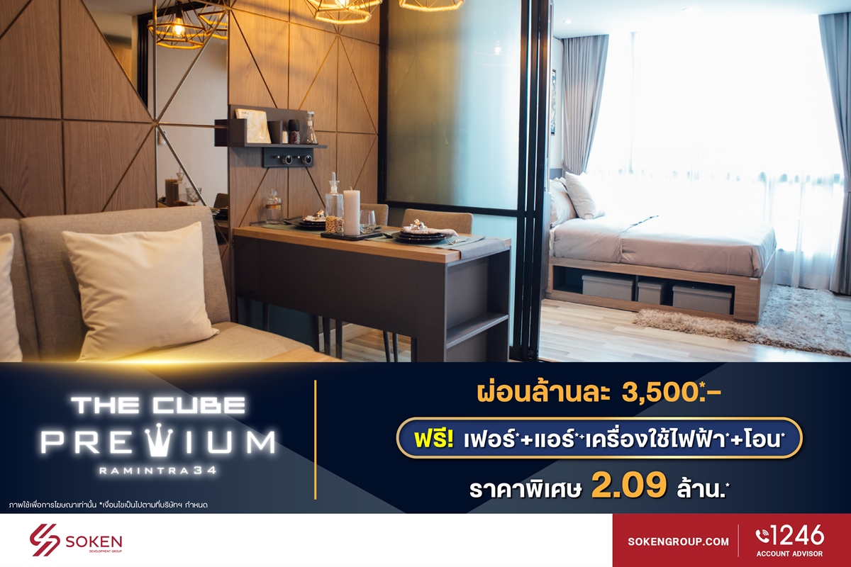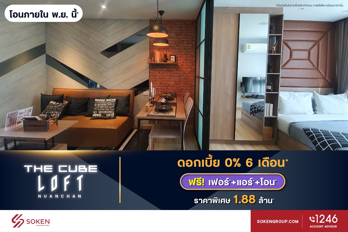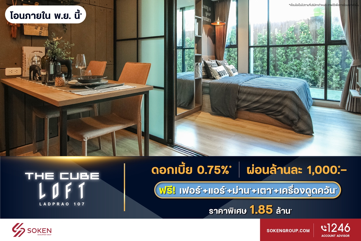 นัดชมโครงการจริงได้ทุกวันไม่เว้นวันหยุด และสอบถามเพิ่มเติม Account Advisor โทร. 1246 กดเลือกโครงการที่ท่านสนใจในเวลาทำการทุกวันไม่เว้นวันหยุด ติดตามความเคลื่อนไหวของโครงการได้ทาง www.facebook.com/TheCubeCondominium เว็บไซต์ www.sokengroup.com ไลน์บริษัท : @Sokengroup และ IG : www.instagram.com/soken_group และ www.youtube.com ช่อง Soken Group
