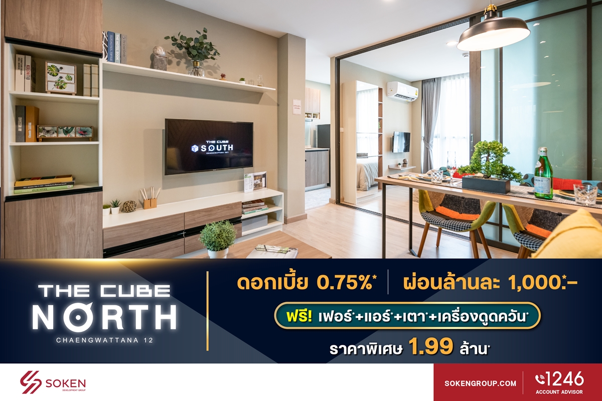 โครงการ The Cube Condominium (เดอะคิวบ์ คอนโดมิเนียม) นำ 5 โครงการพร้อมอยู่และลงทุนอสังหาริมทรัพย์ จัดแคมเปญ The Cube Condo Financial Show Case กู้ง่ายได้ 100% ดอกเบี้ยต่ำ 0.75% ผ่อนล้านละ 1,000 บาท พร้อมของแถมสูงสุดถึง 3 แสนบาท*
