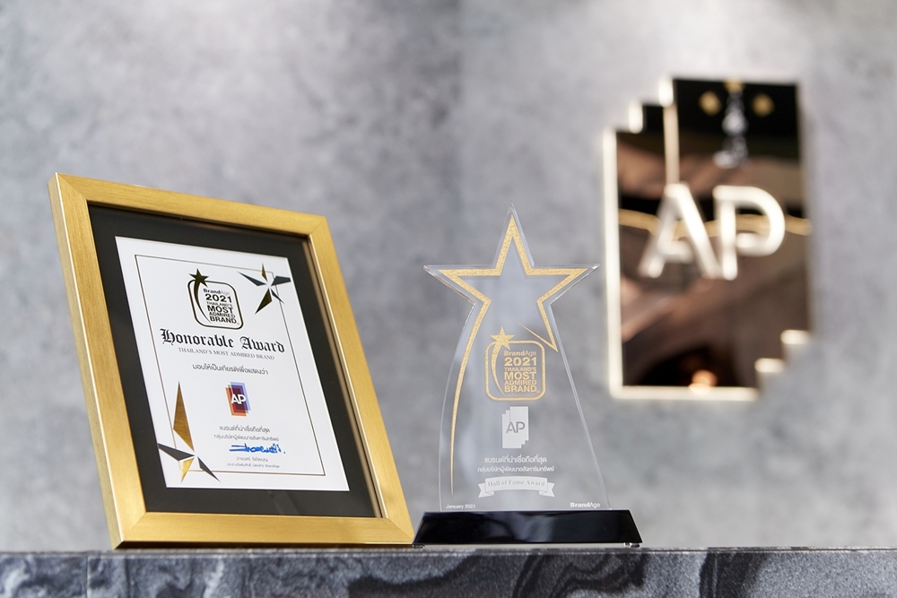 ซึ่งเอพีถือเป็นรายแรกในกลุ่มธุรกิจอสังหาริมทรัพย์ที่ได้รับรางวัลนี้ รางวัล Thailand’s Most Admired Company ด้านบริษัทอสังหาริมทรัพย์ที่คนไทยเชื่อถือที่สุด จากทีมวิจัย BrandAge สื่อการตลาดชั้นนำของไทย หรือรางวัล 2021 Thailand Real Estate Personality of the Year award รางวัลที่มอบให้บุคคลแห่งวงการอสังหาริมทรัพย์ประจำปี ซึ่งพิจารณาจากความเคลื่อนไหว ผลงาน ความสำเร็จ ที่เกิดขึ้นภายใต้การขับเคลื่อนของ CEO ตลอดจนการสนับสนุนช่วยเหลือหน่วยงานต่างๆ ในสถานการณ์การแพร่ระบาดในช่วงปีที่ผ่านมา