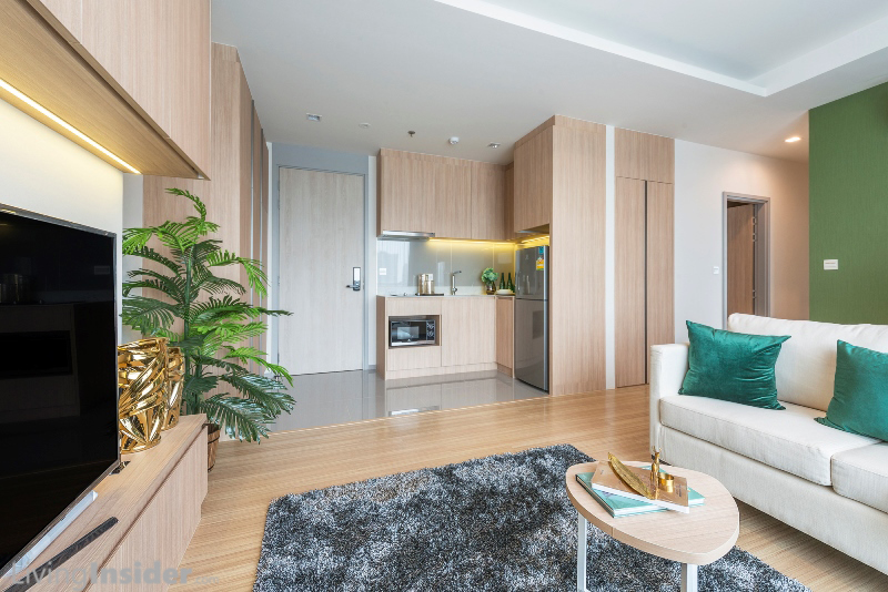 เมื่อเข้าสู่ห้องจะพบชุดครัวซึ่งอยู่ติดกับประตูทางเข้าห้องน้ำ