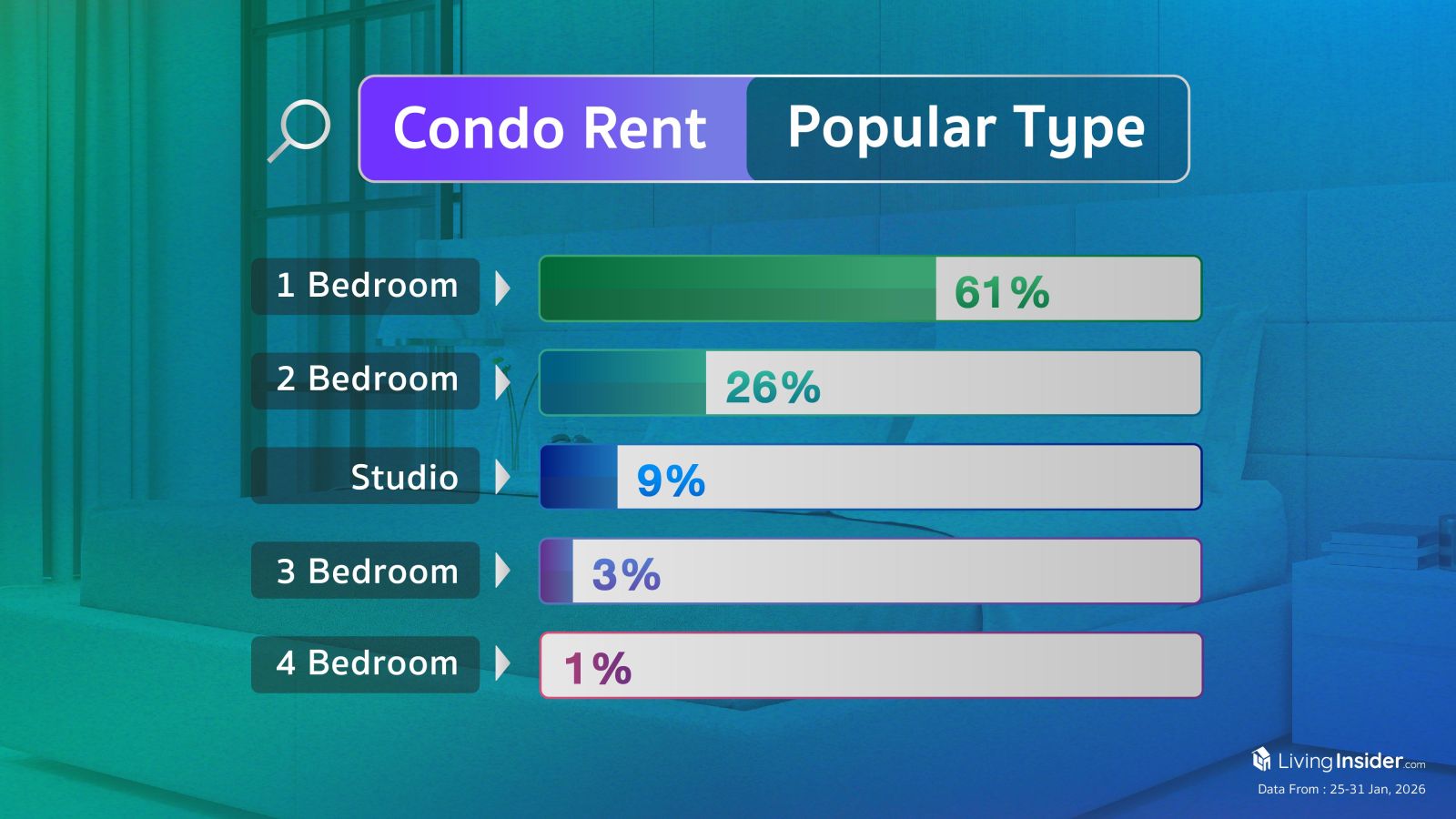 ค้นหาเช่า ► คอนโด ► ห้องแบบไหนมากที่สุด