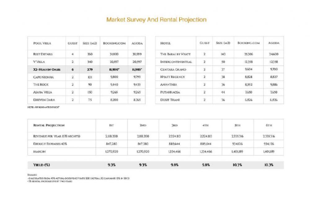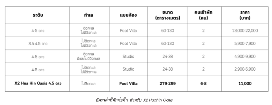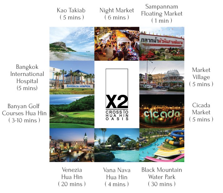 ล่าสุดโครงการเปิดตัวใหม่ X2 HuaHin Oasis เป็นวิลล่า บ้านพักตากอากาศหัวหิน ระดับโรงแรม 5 ดาว ที่อยากแนะนำให้ศึกษาดูเรื่องผลตอบแทนการลงทุน ด้วยตัวเลขที่น่าสนใจ 8% ต่อปีขั้นต่ำ 6 ปี ทำเลแหล่งท่องเที่ยว ใกล้กับ Landmark ต่าง ๆ ของหัวหินไม่ว่าจะเป็น เขาตะเกียบแค่เพียง 5 นาที,ตลาดน้ำสามพันนามเพียง 1 นาที,หัวหินวิลเทจมาร์เก็ตเพียง 5 นาที,สวนน้ำ วานา นาวา หัวหินark เพียง 1 นาที เรียกว่าทำเลเหมาะแก่การลงทุนมากทีเดียว แถมด้วยทีมงานที่ช่วยบริหารจัดการการลงทุนให้เราไม่ต้องเหนื่อยทำเอง