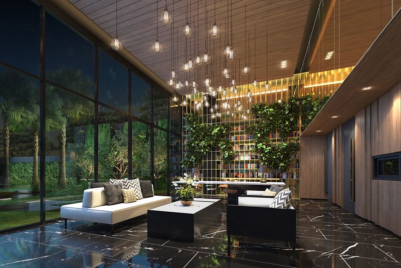 พูดถึงโลเคชั่นไปแล้วลองมาดูตัวโครงกันบ้างครับ The Tree สุขุมวิท 64 ออกแบบโดยนำ Boutique Court Yard เชื่อมต่อกับ Lobby ที่เป็น Double Volume (เพดานสูง) ซึ่งจะให้ความรู้สึกถึงความเป็นธรรมชาติเรียกว่าอาจได้กลิ่นของต้นหญ้ากันเลยทีเดียวครับ