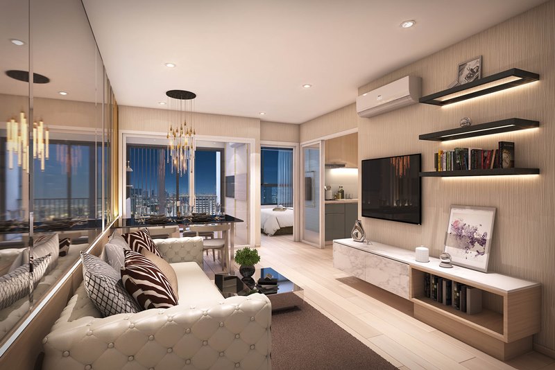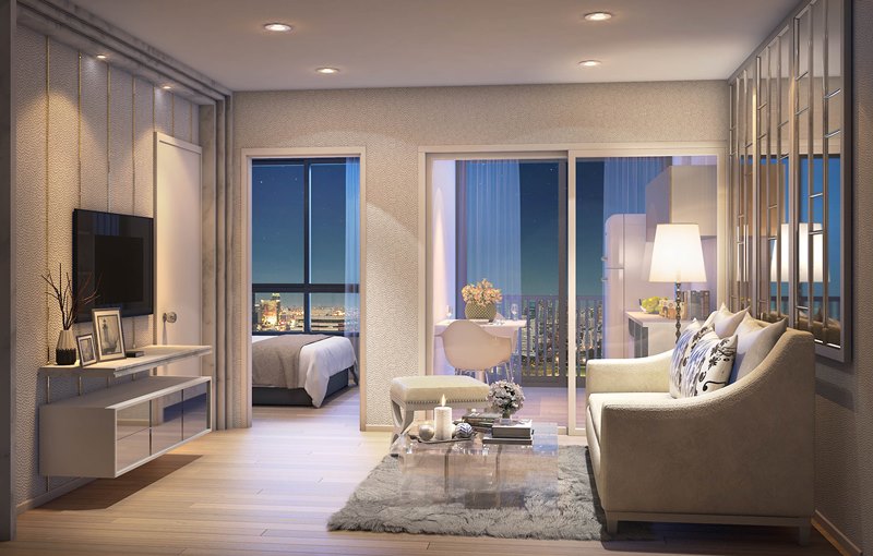 ขนาด 1 ห้องนอน ที่นี่ไม่ได้ทำห้องเล็กมาก โดยมีขนาด 31.60-34.50 ตรม. โดยเฉพาะการออกแบบห้องหน้ากว้าง ทำให้เกิดพื้นที่ในห้องนั่งเล่นกว้างมาก ดูจากระยะทีวีถึงโซฟาได้เลยครับ กว้างจริง !!! อยู่ได้สบายแบบนี้