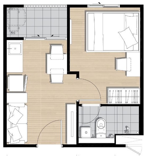 ขนาด 1 ห้องนอน 24.5 ตร.ม.