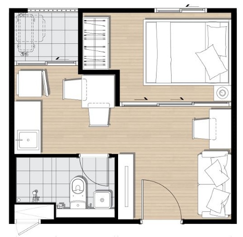 ขนาด 1 ห้องนอน 22.5 ตร.ม.