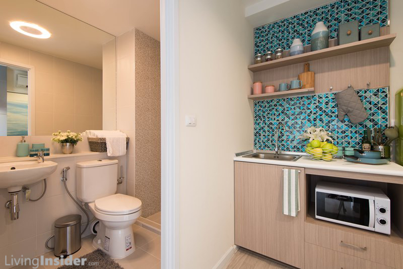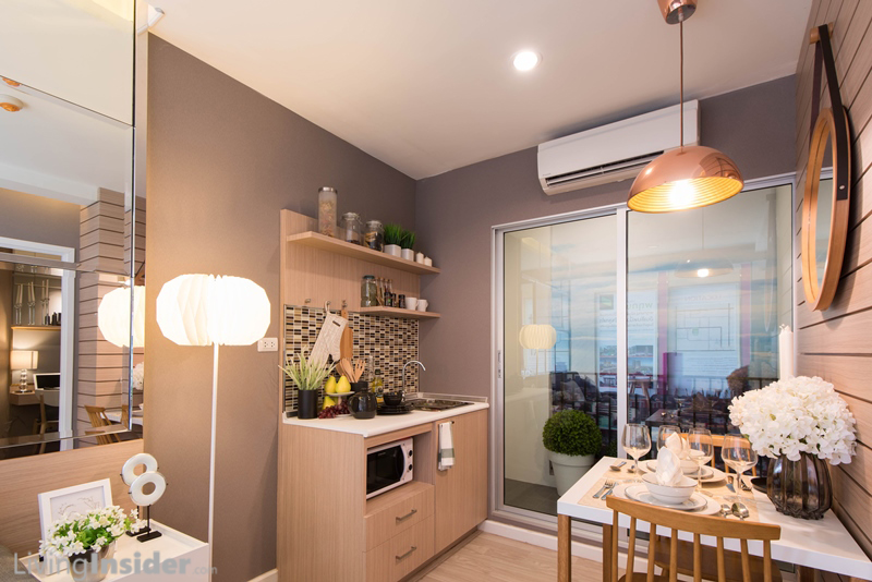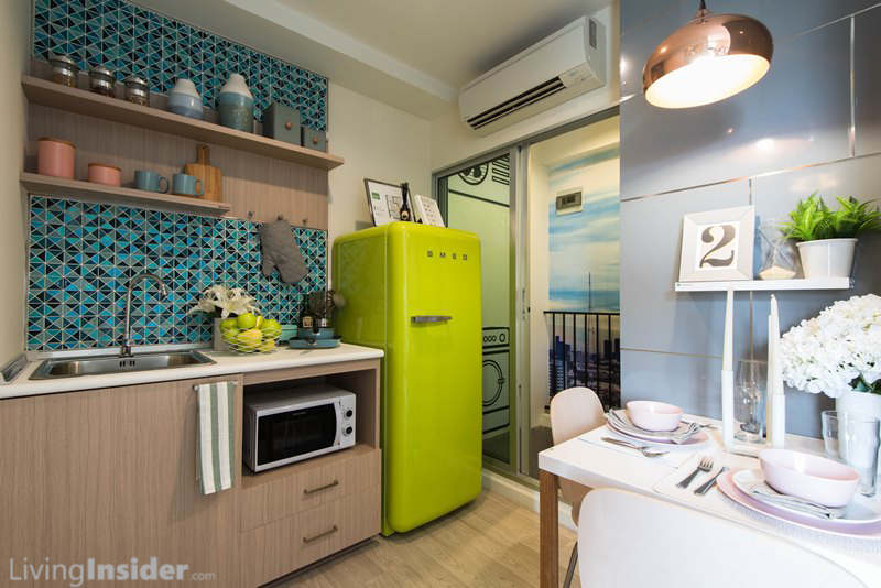 บริเวณครัวติดกับระเบียง จะสามารถเปิดประตูเพื่อระบายอากาศได้ด้วยครับ ชุดครัว Built-In โครงการแถมให้ด้วย