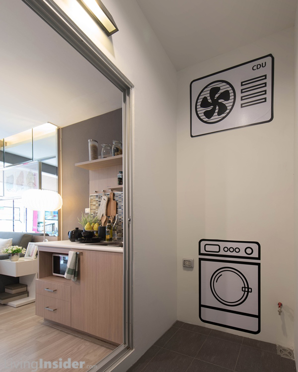 บริเวณพื้นระเบียงจัดพื้นที่สำหรับวางเครื่องซักผ้า