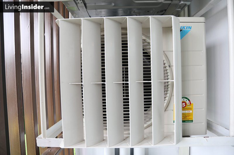 กริลแอร์ของที่นี่ ทุกห้องทุกแบบโครงการเค้าติดตั้งตัวเบี่ยงทิศทางลมให้ด้วยนะครับ ทำให้เวลาคุณไปยืนที่ระเบียง ลมร้อนจะไม่เป่าใส่คุณ