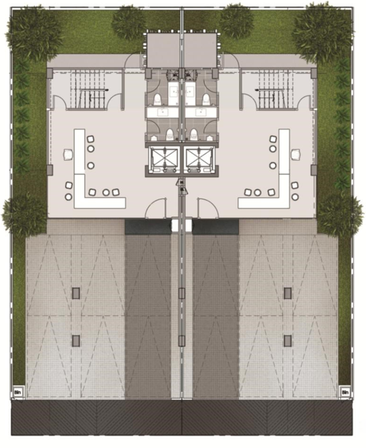 ชั้น 1 : ด้วยขนาดที่ดินหน้ากว้างกว่า 9.5 เมตร และลึกกว่า 22 เมตร ทำให้สามารถจอดรถได้สบายๆถึง 6 คัน และยังเหลือพื้นที่อีกสมควรที่จะทำเป็นห้องรับรองเท่ห์ๆ ด้านหลังบ้านยังเหลือพื้นที่กว้างมากๆ ที่เอาไว้ทำสวนไว้ให้พนักงานมานั่งพักผ่อนกันสบายๆ