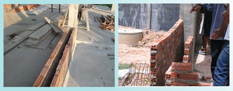 ลืมบอกไปนะครับ ที่นี่ใช้การก่อผนังด้วยอิฐมอญ 2 ชั้น แถมเว้นช่องไว้ระหว่างกลางด้วย