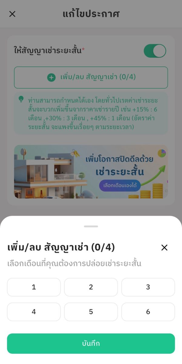 แค่เข้าไปเปลี่ยนเงื่อนไขในประกาศของคุณเป็น “เช่าระยะสั้น / รายเดือน (Short-Term / Monthly Rental)” เท่านั้น
