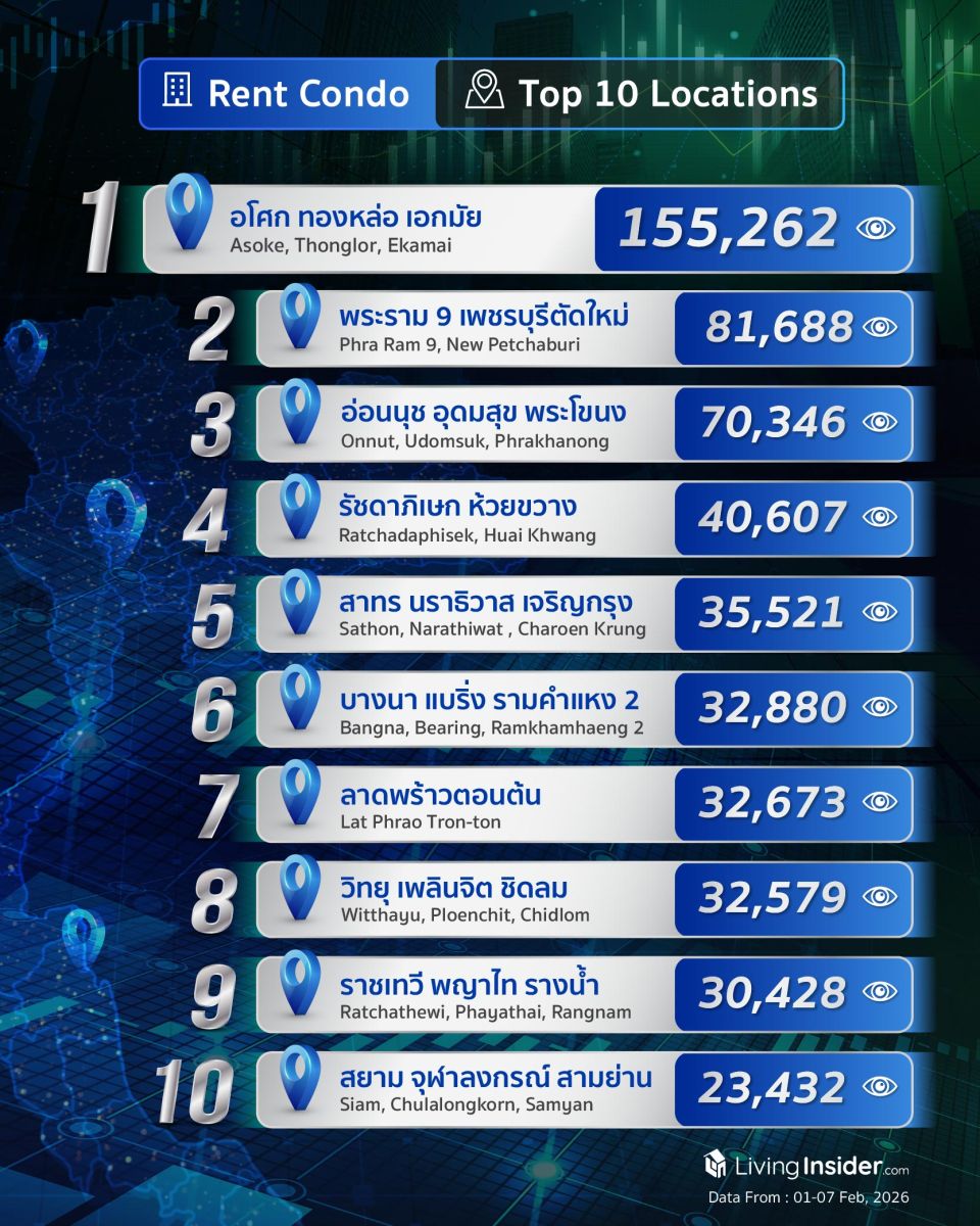 10 อันดับทำเล ►คอนโด ► หาเช่า