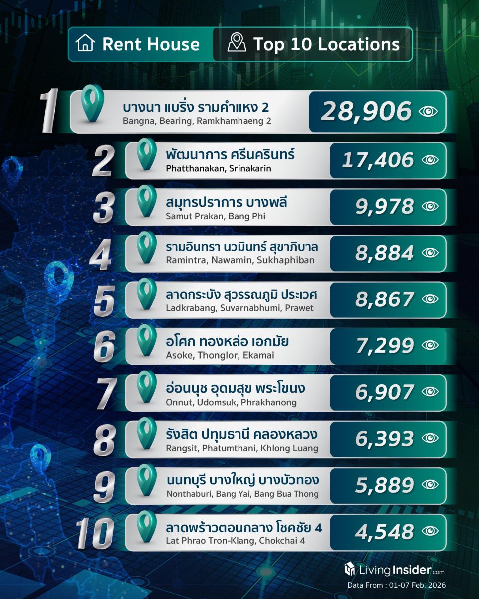 10 อันดับทำเล ►บ้าน ► หาเช่า