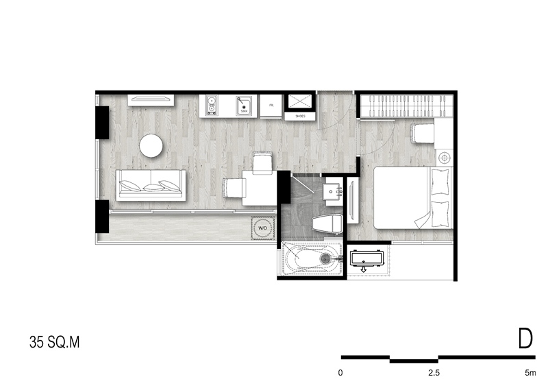 อยู่ไปซัก 5 ปี พอเริ่มมีครอบครัวใหญ่ขึ้น ถ้าอยากขายไปซื้อห้องที่ใหญ่ขึ้นก็ขายได้ ไม่น่าจะขาดทุน อารมณ์เหมือนได้อยู่ฟรี พร้อมกำไรติดไม้ติดมือไปซื้อห้องใหม่ ผมแนะนำห้อง Type D ขนาดกำลังเหมาะสม และราคาไม่แรงเกินไป 4 ล้านบาท แปลนห้องเป็นสัดส่วน หน้ากว้าง บานประตูไม่ติดกัน ห้องติดกระจกบานยาวทำให้ดูโล่งและโปร่ง อยู่ทุกวันก็ไม่เบื่อครับ