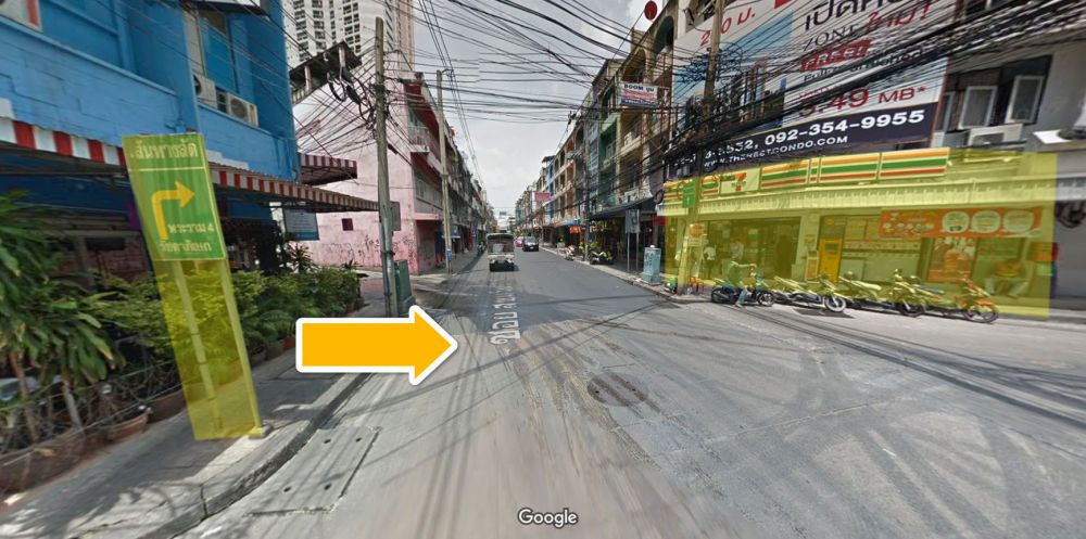 จะเจอจุดสังเกตคือป้ายที่เขียนว่า "เส้นทางลัดพระราม 4" และ"เซเว่นอีเลเว่น" ให้เลี้ยวขวาเข้าซอยไปเลยครับ