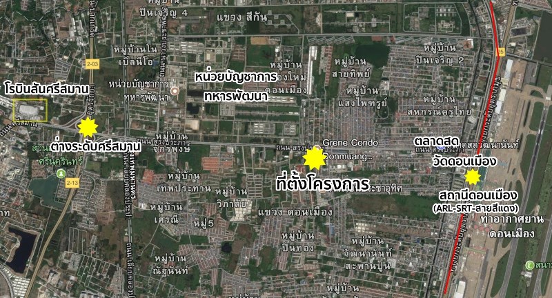 ส่วนรถไฟฟ้าที่ใกล้ที่สุดคือ สายสีแดงสถานีดอนเมือง จะอยู่ห่างจากโครงการแค่ 1.9 กม. เท่านั้น