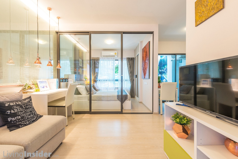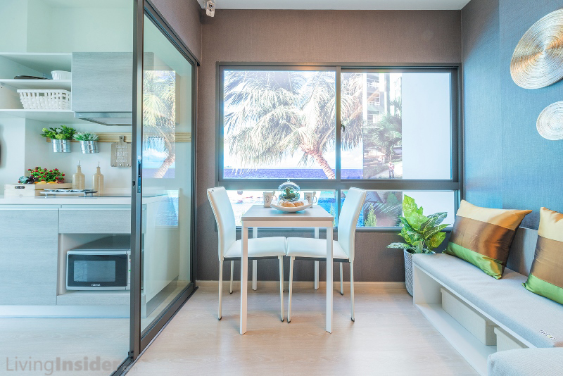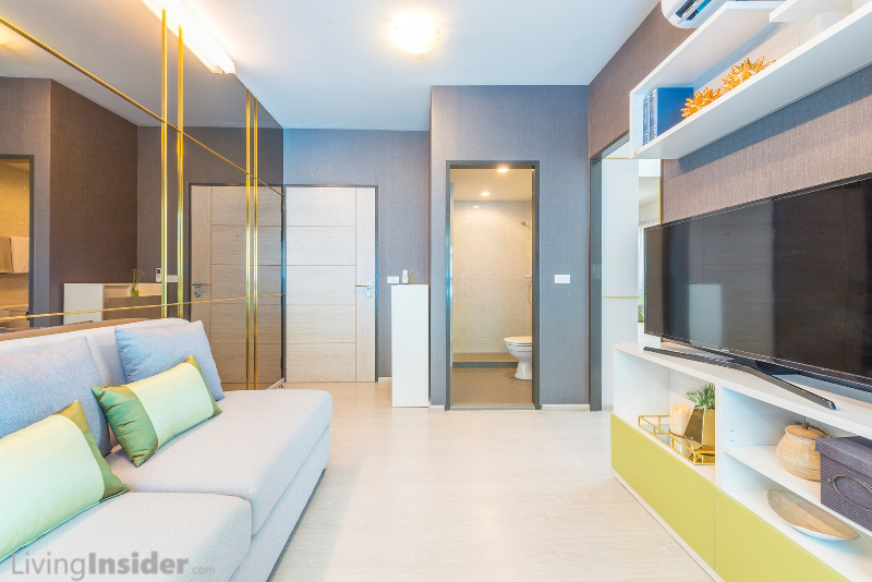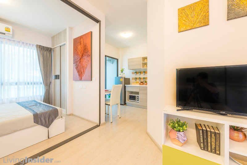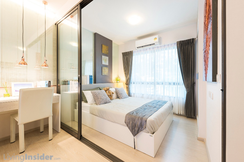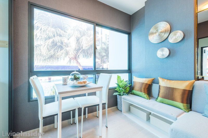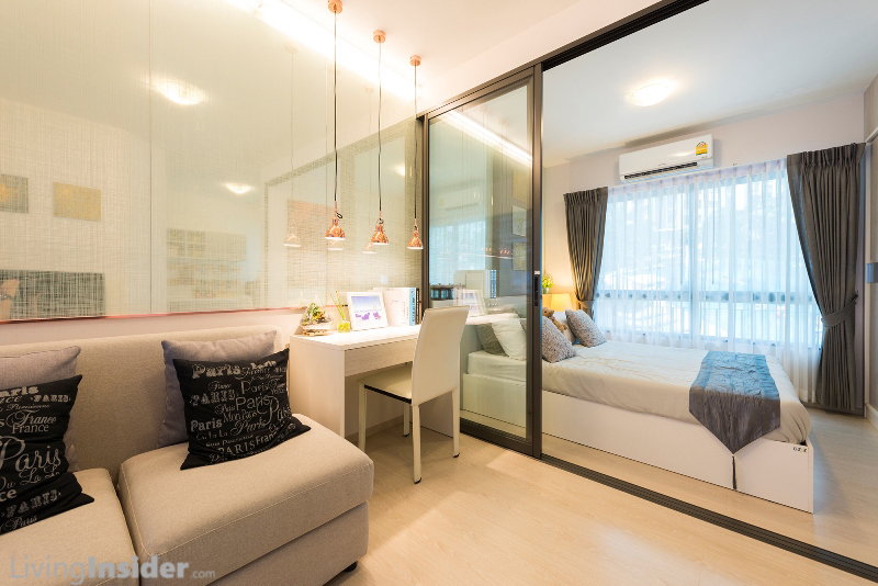 เนื่องจากเป็นห้องมุม ดังนั้นนี่จึงเป็น 1 ห้องนอนที่ออกแบบได้ลงตัวและสมบูรณ์แบบมาก ได้ทั้งห้องนั่งเล่นติดหน้าต่าง ห้องครัวแยก ห้องน้ำเข้าจากห้องนั่งเล่น