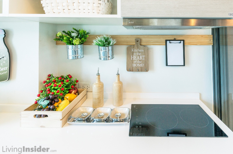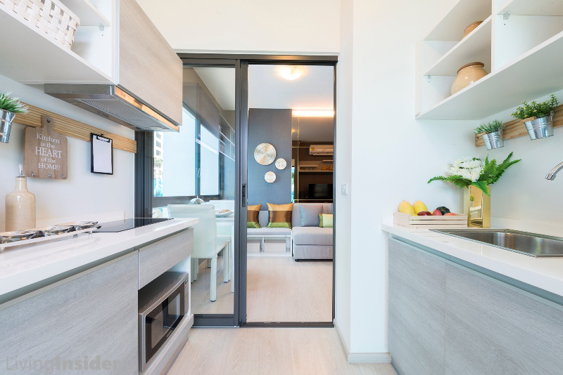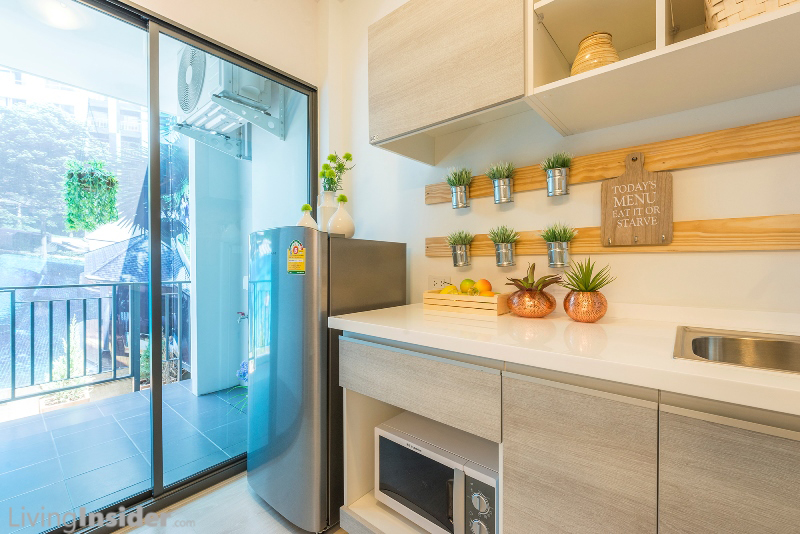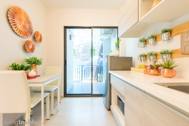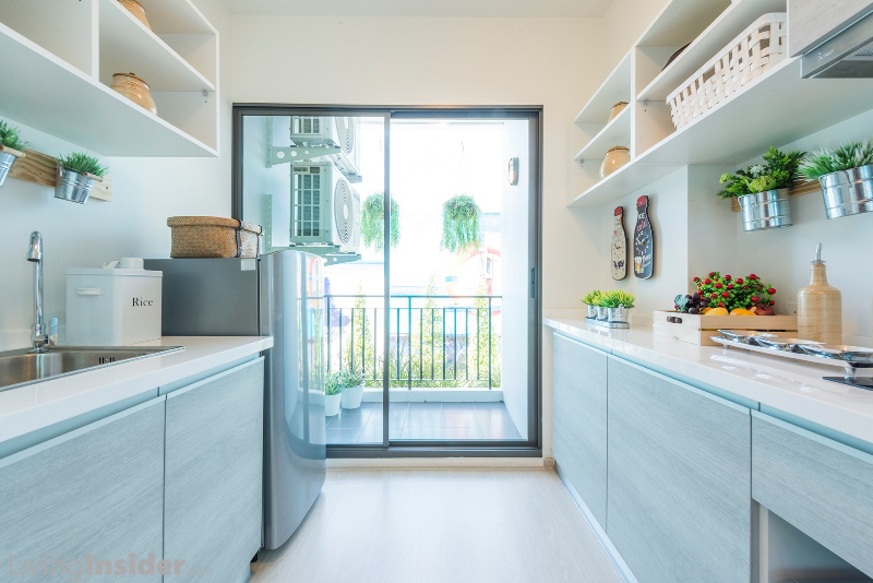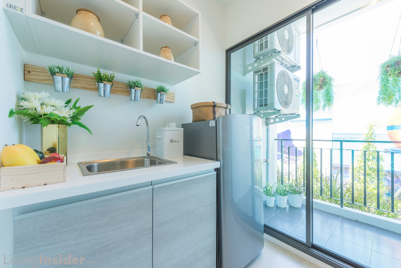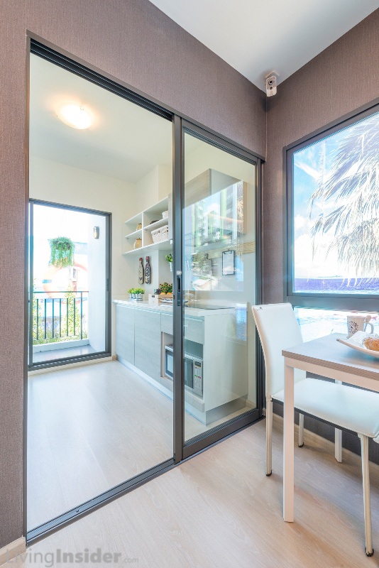ส่วนครัวเป็นครัวปิดมีประตูกั้นจากส่วนห้องนั่งเล่น