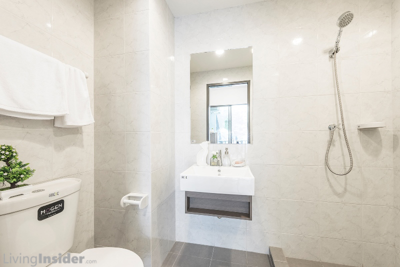 ห้องน้ำเข้าจากส่วนห้องนั่งเล่น ไม่ต้องผ่านห้องนอน ทำให้เป็นส่วนตัวมากขึ้น