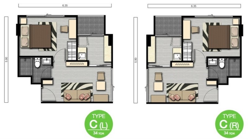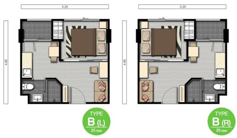 ส่วนยูนิตขนาด 25 ตารางเมตร ผังภายในห้อง จะเหมือนกับยูนิตขนาด 30 ตารางเมตรทุกประการต่างกันแค่ส่วนของระเบียงที่ไม่ได้เชื่อมต่อยาวไปถึงห้องนอน