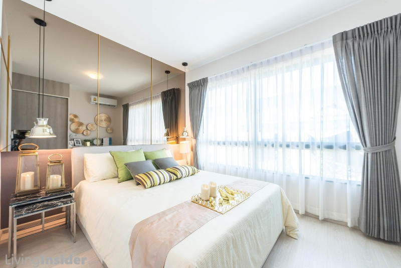 โครงการนี้ให้กระจกหน้าต่างบานใหญ่ดีครับ ทำให้ห้องนอนดูห้องโปร่งและหรูขึ้นเยอะเลย