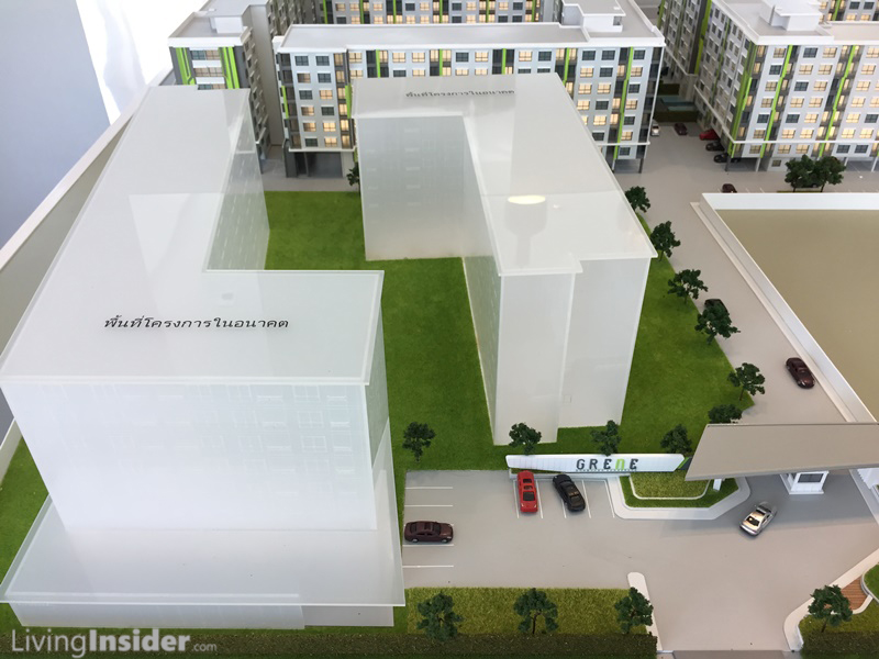 ที่เห็นส่วนโมเดลขาวๆคือ ส่วนด้านหน้าโครงการ อาจพัฒนาเป็น Mixed-Use ที่อยู่อาศัยหรือพื้นที่เช่า ขึ้นอยู่กับการตัดสินใจของโครงการในอนาคต