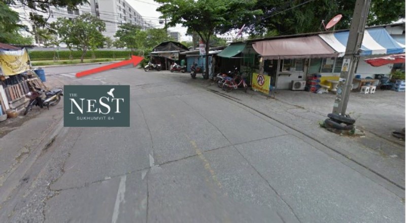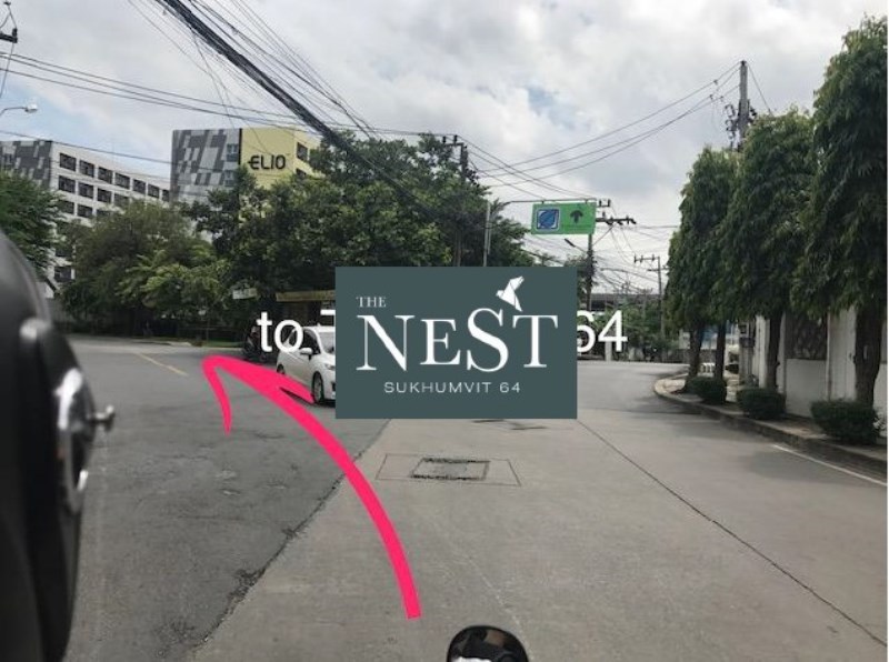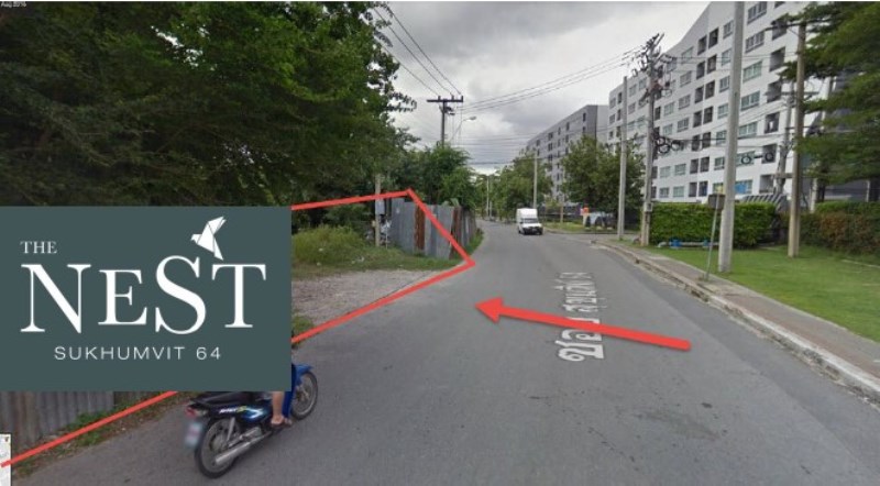 บริเวณที่ว่างแปลงตรงทางโค้งซึ่งตรงข้ามคอนโด Elio นี่แหละครับคือ ที่ตั้งของโครงการ The Nest สุขุมวิท 64 ซึ่งจะอยู่ห่างจากบีทีเอสประมาณ 650 เมตรเท่านั้น