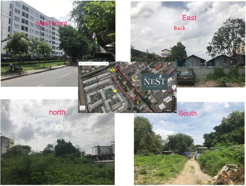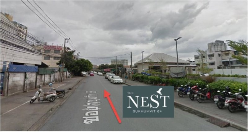 ถนนด้านหน้าโครงการคือทิศตะวันตก ตรงข้ามเป็นคอนโด Low Rise ที่เกรดใกล้เคียงกัน แต่ราคาขายในตลาดตอนนี้สูงกว่าราคา Excusive Pre-Sales ของ The Nest สุขุมวิท 64 อยู่เกือบ 20%