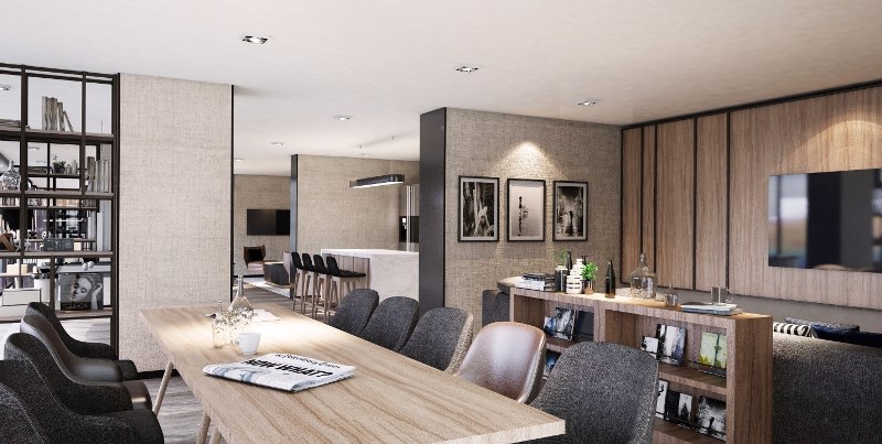 เปิดประตูเข้ามาจะเจอ Living Room โดยมี Dining room อยู่ด้านหลัง ออกแบบเผื่อไว้สำหรับคนรุ่นใหม่ที่เน้นใช้ชีวิตแบบสบายๆ เปิดประตูเข้ามาก็ล้มลงพักบนโซฟา พักผ่อนได้ทันที หิวเมื่อไหร่ค่อยเดินไปห้องข้างหลัง