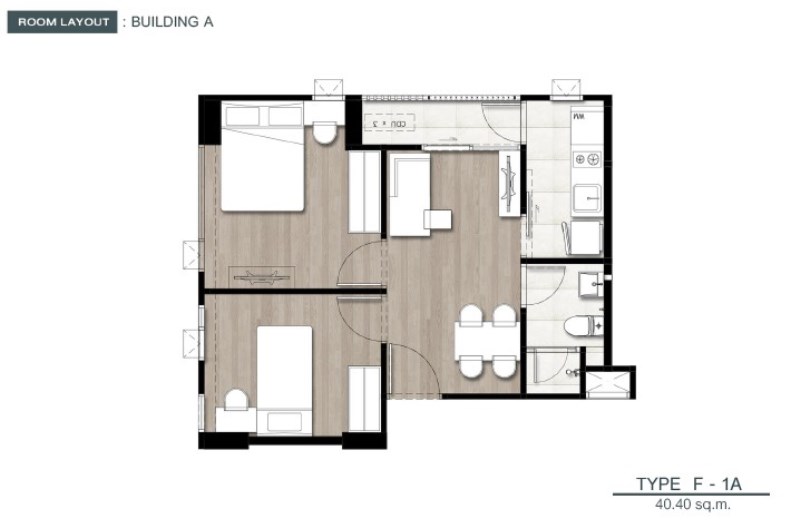 นอกจากห้องขนาด 1 ห้องนอนแล้ว ทางโครงการยังเตรียมห้องขนาด 2 ห้องนอน ไว้รองรับ New Family อีกด้วย ถึงจะราคาสูงกว่าห้อง 1 ห้องนอน แต่จะได้ตำแหน่งห้องมุม สาสามารถติดกระจกรับวิวได้สองทิศทาง ทั้งห้องนั่งเล่นและห้องนอน ดูจาก Room Plan แล้ว ถือว่าออกแบบการใช้สอยได้ดีเหมือนห้อง 1 ห้องนอน แต่กว้างและโปร่งขึ้นมาก อีกทั้งยังมีห้องนอนเล็กไว้สำหรับรับรองแขกหรือเป็นห้องนอนลูกอีกด้วย