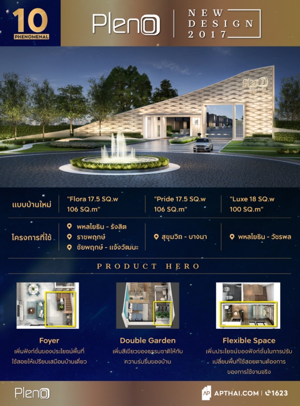 ช่วงหลังๆนี้ผมเริ่มเห็นอีกแบรนด์อย่าง Pleno กำลังมาแรงขึ้นเรื่อยๆ ผมมองว่าในอนาคตจะเป็นแบรนด์น้องใหม่ที่มาแรงอย่างแน่นอน ถ้าจะว่าไปแล้ว Pleno ก็จะเหมือนบ้านกลางเมืองที่ขนาดเล็กลงมา โดยออกแบบเป็นทาวน์โฮม 2 ชั้น เพื่อตอบโจทย์ลูกค้าที่ต้องการบ้านในราคาสบายๆประมาณ 2-3 ล้าน แต่ยังได้ความหรูหราและกลิ่นอายเท่ๆแบบบ้านกลางเมือง
