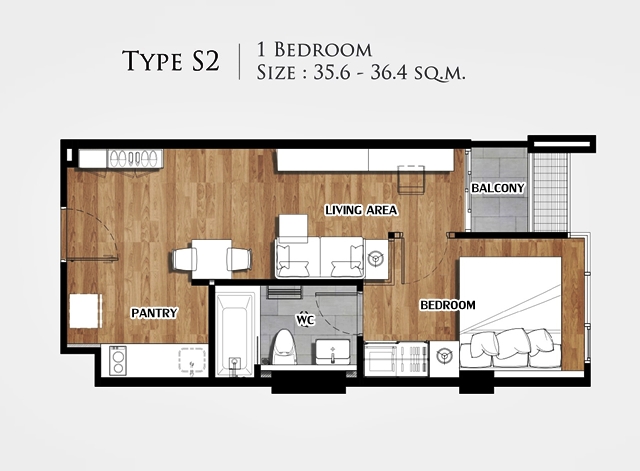 เป็นตัวเลขจะประมาณ 35-36 ตรม.แต่พอเข้ามารู้สึกได้เลยครับว่าห้องนั่งเล่นกว้างมาก
