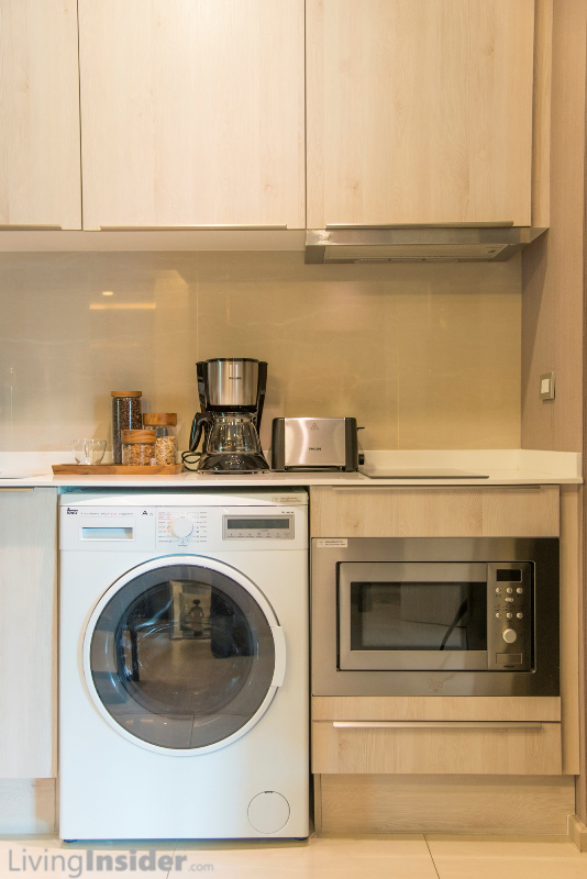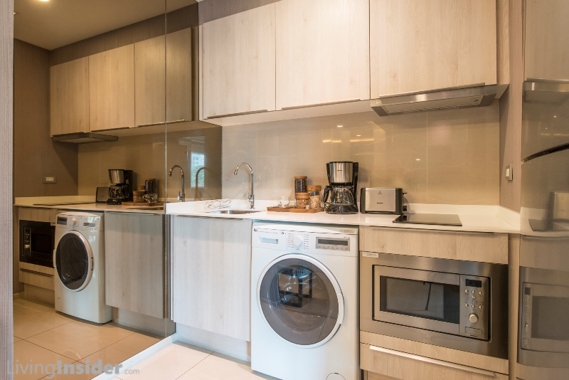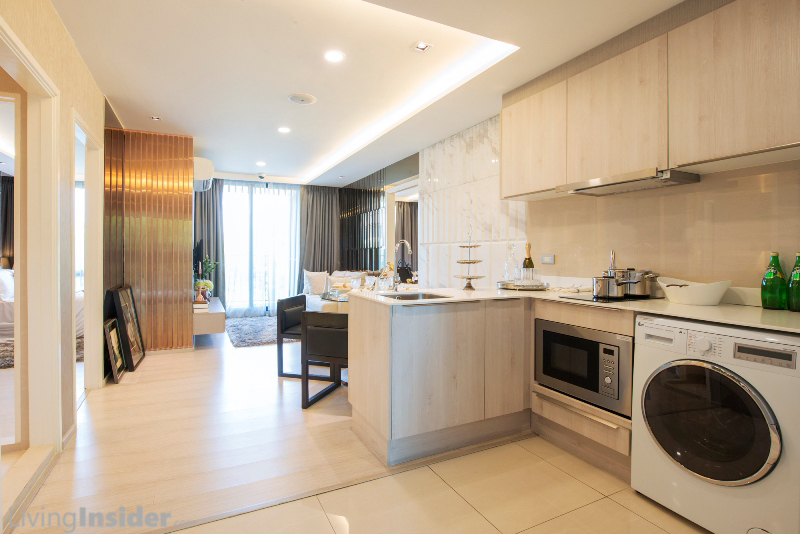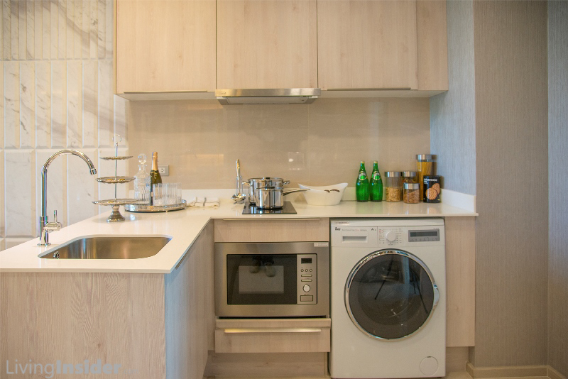 ครัวของแบบ 2 ห้องนอน จะเป็นรูปตัว L ของแถมครบเหมือนเดิมครับ พื้นที่เยอะๆแบบนี้ ทำอาหารกันสนุกครับ