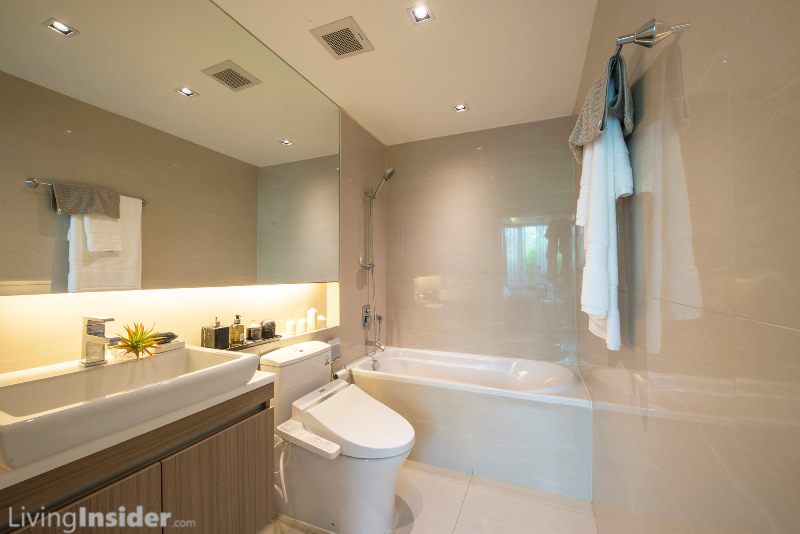ห้องน้ำภายในห้องนอน Master มีท้ังส่วน Shower และอ่างอาบน้ำ พร้อมชักโครกแบบ Washlet