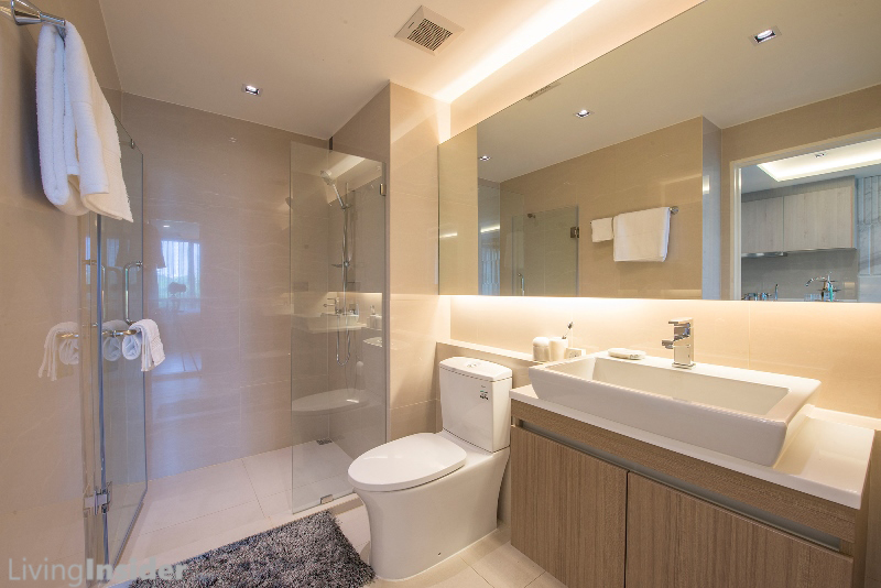 ห้องน้ำของห้องนอนเล็กใช้ร่วมกับห้องนั่งเล่นได้