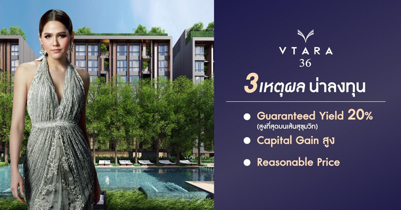 ดังนั้นถ้าคุณกำลังหาซื้อคอนโดลงทุนให้เช่าย่านใจกลางสุขุมวิท โครงการ VTARA สุขุมวิท 36 สามารถให้ผลตอบแทนคุ้มค่าอย่างแน่นอน และยิ่งไปกว่านั้นนะครับ ตอนนี้ทางโครงการมี Promotion การันตี Yield 20%* ให้อีกด้วย (รายละเอียดเพิ่มเติมสามารถสอบถามได้ที่โครงการครับ)