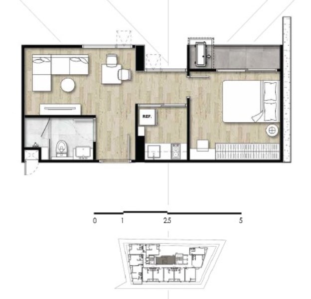 ห้องของโครงการมีขนาดให้เลือกหลายตั้งแต่ 25 ถึง 44 ตารางเมตร โดยจะเน้นเป็นห้องขนาด 1 ห้องนอนซึ่งกำลังพอเหมาะกับ Life Style ของคนสมัยใหม่ ใช้วัสดุผนัง พื้น และ Furniture คุณภาพทุกชิ้น สุขภัณฑ์ Kohler แอร์ Daikin ตู้เสื้อผ้าขนาดใหญ่ แถมบางห้องยังติดอ่างอาบน้ำให้อีกด้วย